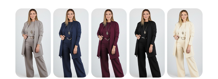 ⏳Begränsad tid 50 % rabatt⏰Hemkomfort + Business Elegance Lång kofta, topp och byxor, 3-delat set👚
